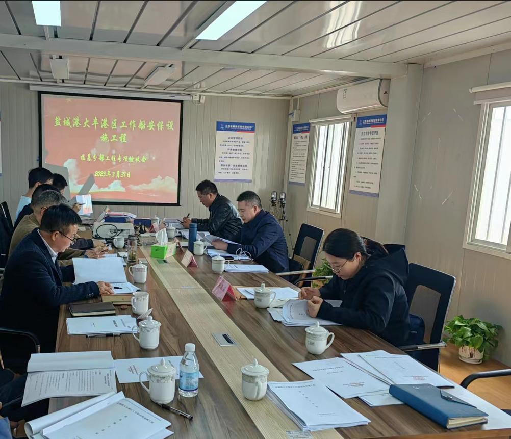 近日,鹽城港大豐港區(qū)工作船安保設(shè)施工程順利通過樁基驗收。鹽城市交通運輸綜合行政執(zhí)法支隊、建設(shè)單位、設(shè)計單位、勘探單位、監(jiān)理單位、鹽城港建設(shè)有限公司等單位相關(guān)負(fù)責(zé)人參加了本次驗收會。