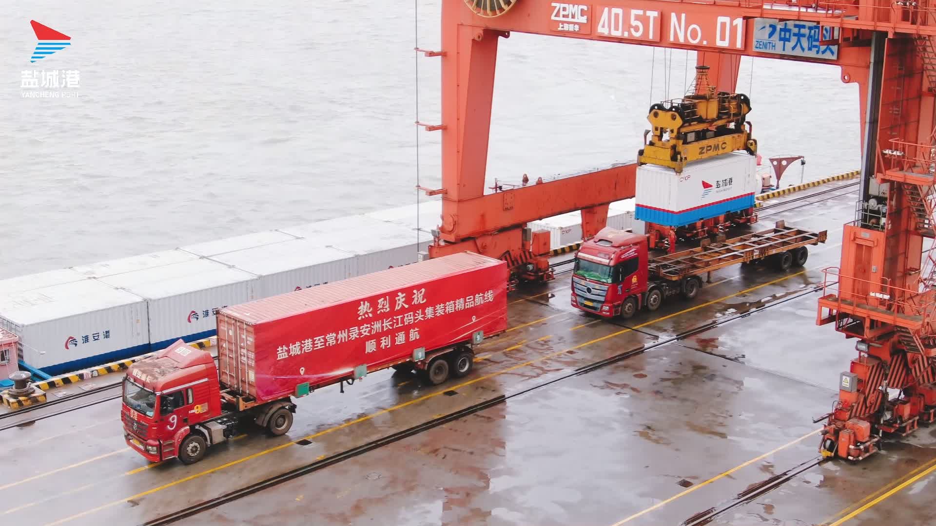 再添新航線!鹽城港至常州錄安洲長江碼頭內(nèi)河集裝箱精品航線正式通航