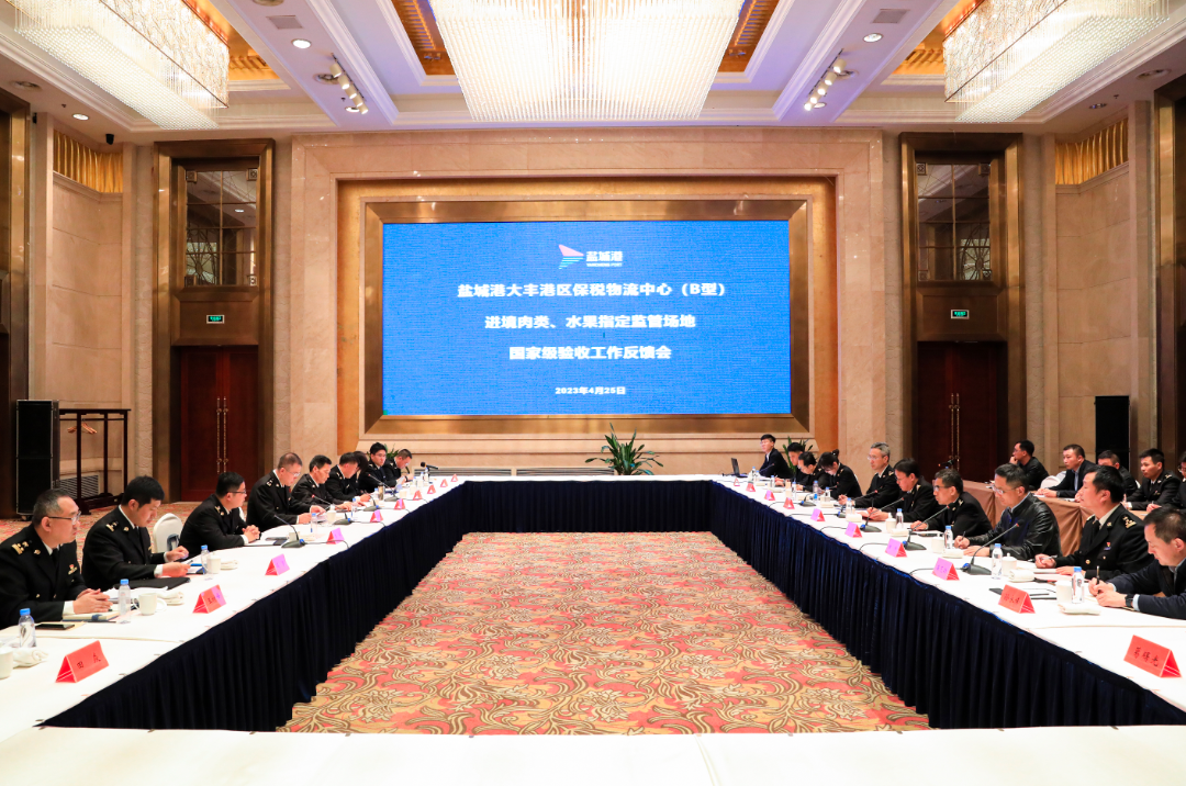 4月25日,國家海關(guān)總署組織專家驗收組對鹽城港保稅物流中心(B型)進境肉類、水果指定監(jiān)管場地進行國家級驗收,經(jīng)過專家驗收組的認(rèn)真查驗審核,同意鹽城港保稅物流中心(B型)進境肉類、水果指定監(jiān)管場地通過國家級驗收。國家驗收組,鹽城港集團黨委書記、董事長周正雄,鹽城海關(guān)黨委書記、關(guān)長吳志明,鹽城港集團黨委副書記、董事、總經(jīng)理陸帥,南京海關(guān)、鹽城海關(guān)、市商務(wù)局相關(guān)負(fù)責(zé)同志等參加驗收。