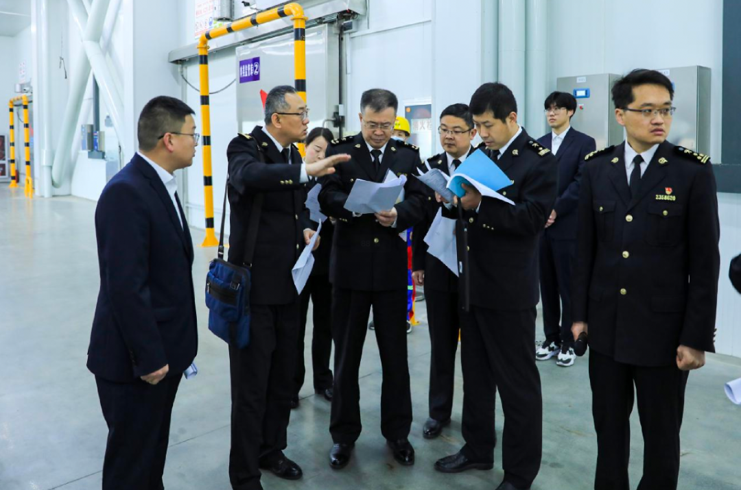 驗收期間,國家驗收組一行前往保稅物流中心,對前置攔截區(qū),肉類、水果指定監(jiān)管場地進行驗核,現(xiàn)場聽取相關(guān)情況介紹,隨即召開內(nèi)部研討,就驗收情況進行內(nèi)部評議,并與南京海關(guān)、鹽城海關(guān)相關(guān)負(fù)責(zé)同志對驗核情況進行交流。