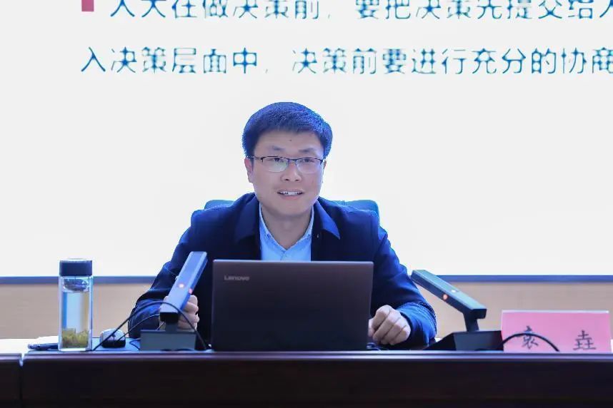 會(huì)上,袁垚圍繞習(xí)近平總書記在全國(guó)兩會(huì)上的重要講話精神、全國(guó)兩會(huì)基本情況、2023年政府工作報(bào)告要點(diǎn)、2023年兩會(huì)熱點(diǎn)重點(diǎn)內(nèi)容等方面內(nèi)容,并結(jié)合鹽城港的發(fā)展和工作實(shí)際,對(duì)全國(guó)兩會(huì)精神進(jìn)行了深度解讀。