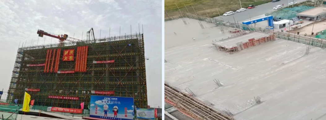 勞動節(jié)里施工忙 揮灑汗水續(xù)新篇丨鹽城港大豐港綜合倉儲物流項(xiàng)目綜合用房主體結(jié)構(gòu)順利封頂