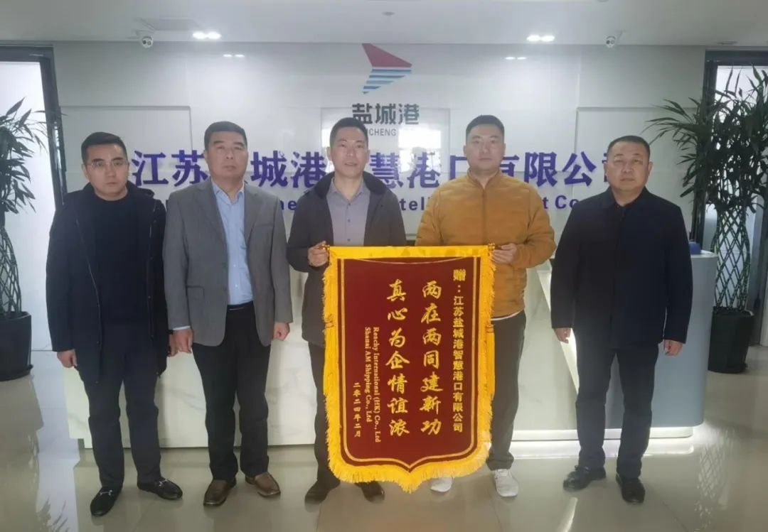 3月11日,香港汭灃航運有限公司、上海禛航船務(wù)有限公司代表送來了寫有“真誠服務(wù)為航海,優(yōu)質(zhì)高效促發(fā)展”“兩在兩同建新功 真心為企情誼濃”字樣的錦旗,對鹽城港航運集團、智慧港口公司長期以來提供的優(yōu)質(zhì)高效的服務(wù)表達感謝之情。