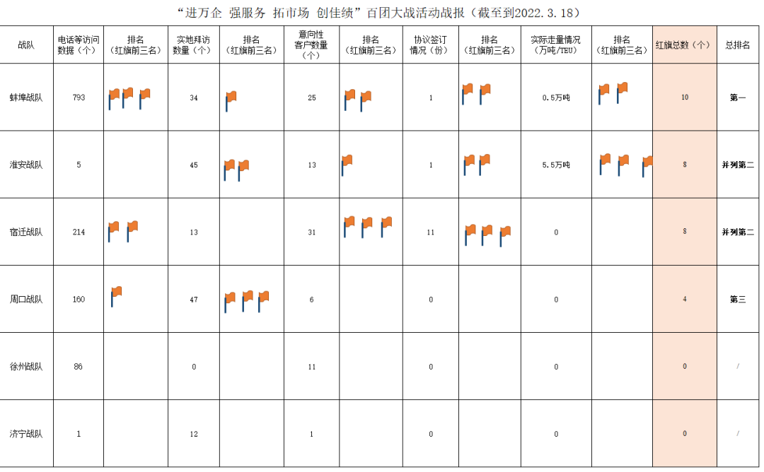 2.濱海港區(qū)戰(zhàn)隊:在拜訪活動中,濱海港區(qū)戰(zhàn)隊不僅僅局限于規(guī)上企業(yè)名單,拜訪的同時也不忘挖掘周邊有可能的企業(yè)。通過這種做法也是成功發(fā)掘一家化肥貿(mào)易企業(yè),吞吐量50萬噸,正在商討合同條款,預(yù)計下周簽訂合同并開始走量。