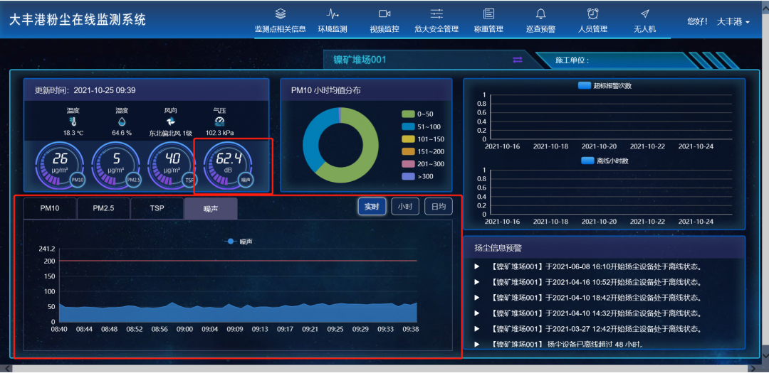 為有效降低港口作業(yè)過程中的污染,鹽城港集團各港區(qū)建有粉塵檢測系統(tǒng)、污水處理系統(tǒng)、堆場噴淋系統(tǒng)、門機作業(yè)霧炮系統(tǒng)、料斗噴淋系統(tǒng)、霧炮車等環(huán)境保護設備設施系統(tǒng),在保障港區(qū)生產(chǎn)運營的同時,也為港口在生態(tài)環(huán)境監(jiān)測方面提供了便利。