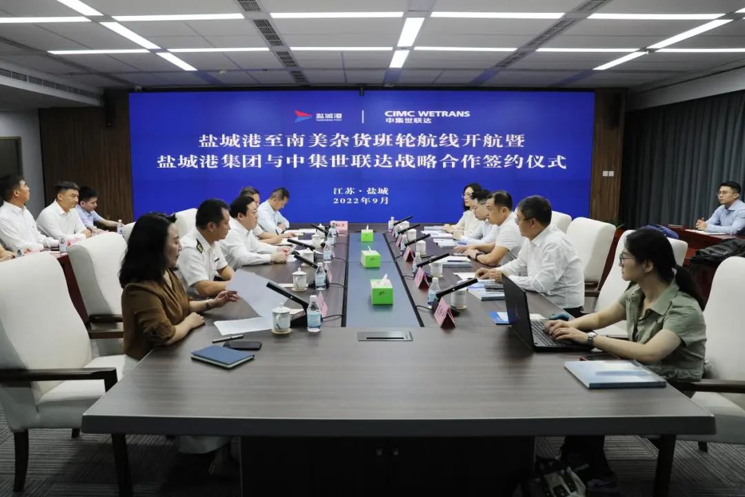 9月17日,鹽城港至南美雜貨班輪航線開航暨鹽城港集團與中集世聯(lián)達(dá)戰(zhàn)略合作簽約儀式成功舉行。集團黨委書記、董事長、總經(jīng)理周正雄主持活動。中集世聯(lián)達(dá)長江物流副總經(jīng)理劉羽,鹽城海關(guān)二級高級主辦李健,鹽城海關(guān)駐大豐港海關(guān)辦事處主任崔克勁,集團總經(jīng)理助理孫永峰等參加并鑒簽。鹽城港港口公司董事長袁欣代表集團與中集世聯(lián)達(dá)長江物流公司簽訂合作協(xié)議。