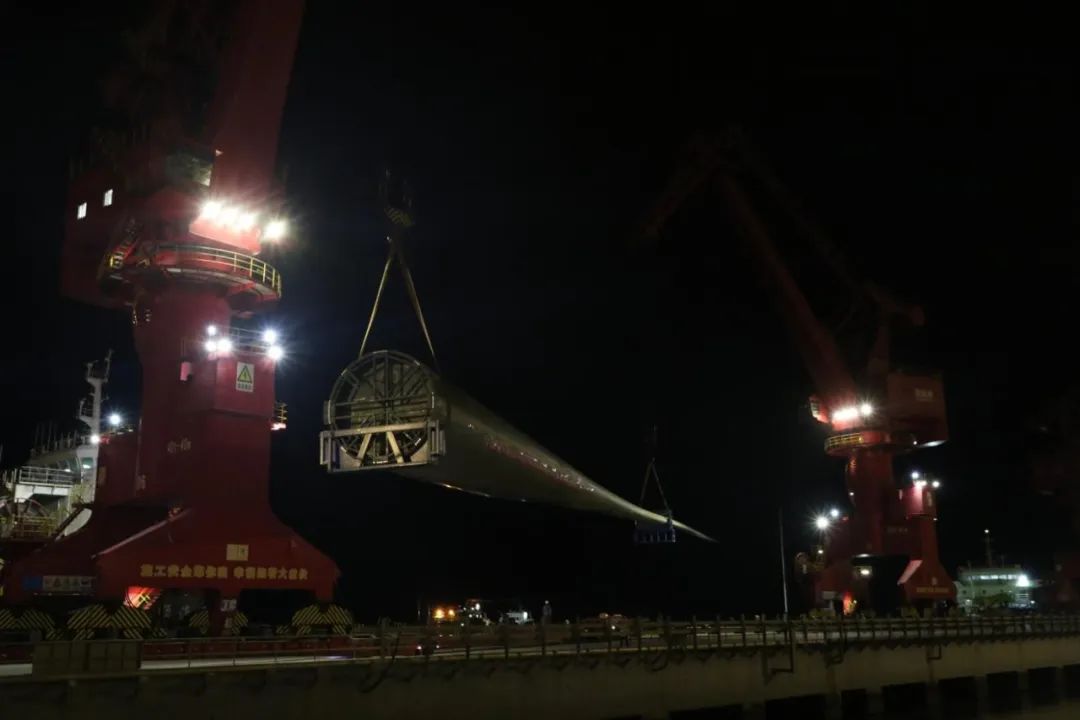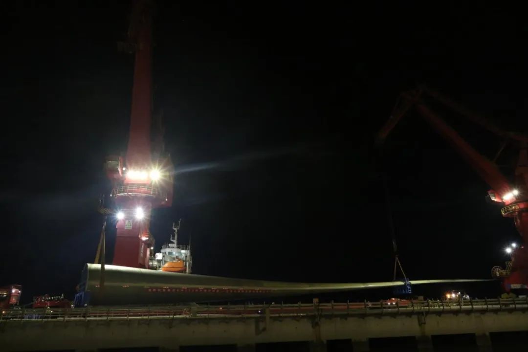 “指揮就位”“車輛就位”“裝卸就位”“安全員就位”......9月30日晚,在一系列作業(yè)準(zhǔn)備就緒后,全球最長(zhǎng)風(fēng)電葉片在鹽城港射陽(yáng)港區(qū)風(fēng)電碼頭成功完成裝卸,再度刷新鹽城港裝卸風(fēng)電葉片長(zhǎng)度新紀(jì)錄,向黨的二十大獻(xiàn)上了一份厚禮。