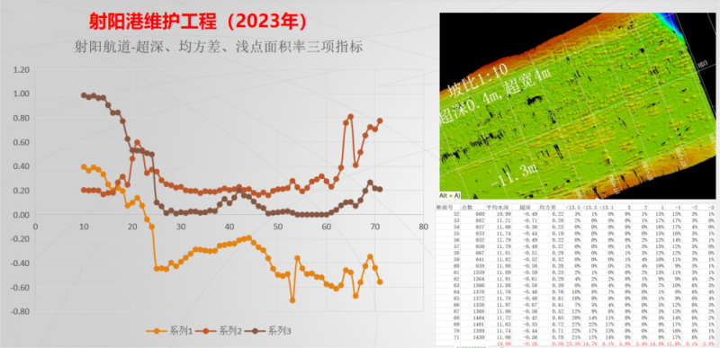 項目管理團(tuán)隊積極開展港航項目工藝創(chuàng)新,一是采用氣泡式拖耙利用退潮流減淤工藝,使耙吸船在高濃度泥沙條件下的施工效率得到顯著提高。二是采用基于均方差、淺點率、平均超深三項指標(biāo)的耙吸船、耙平器掃淺施工工法,合理評估耙吸船施工質(zhì)量及耙平器的施工效率,確定耙吸船和耙平器的匹配和數(shù)量,有效減少了超挖方量,提高了施工效率,降低了疏浚成本。