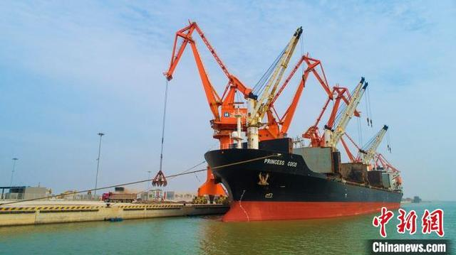 1日上午,靠泊在江蘇鹽城港濱海港區(qū)通用碼頭、滿載著從印度尼西亞進(jìn)口的兩萬(wàn)噸鎳鐵的利比里亞籍貨輪緊張有序地進(jìn)行卸貨作業(yè)。這是鹽城港濱海港區(qū)一類口岸正式對(duì)外開(kāi)放后迎來(lái)的首艘外貿(mào)貨輪。