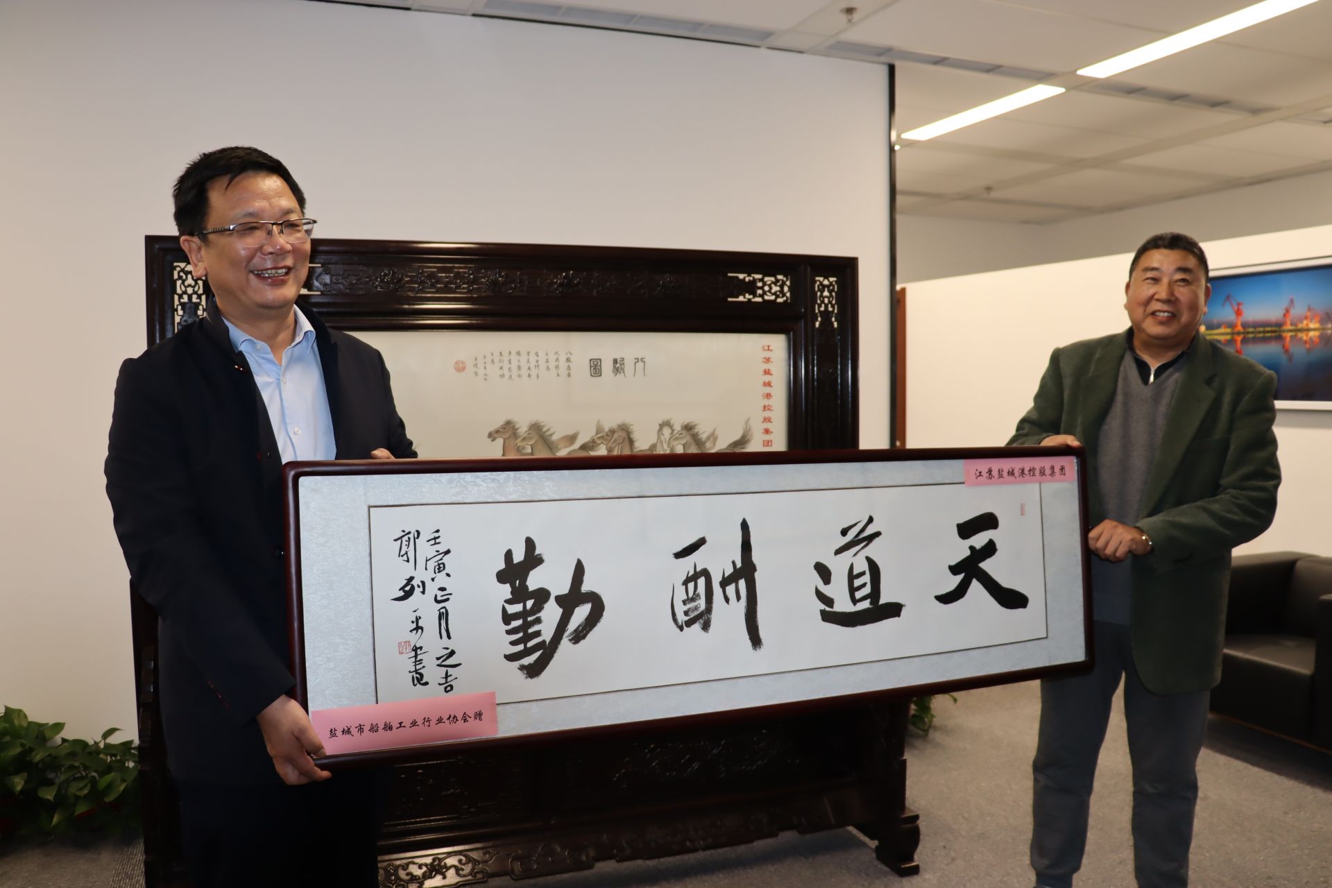 3月10日下午,鹽城市交通運輸局、市交通運輸綜合行政執(zhí)法支隊、市綜合交通學(xué)會和市船舶工業(yè)行業(yè)協(xié)會來到鹽城港控股集團(tuán)進(jìn)行授匾調(diào)研洽談,在集疏運體系建設(shè)與發(fā)展、一線員工安全技能培訓(xùn)及船舶設(shè)計與制造等事宜雙方達(dá)成共識。集團(tuán)黨委書記、董事長、總經(jīng)理周正雄和集團(tuán)黨委委員、董事、副總經(jīng)理夏立新及市綜合交通學(xué)會副理事長潘進(jìn)山、市地方海事局原局長周炳學(xué)共同為授匾揭幕。