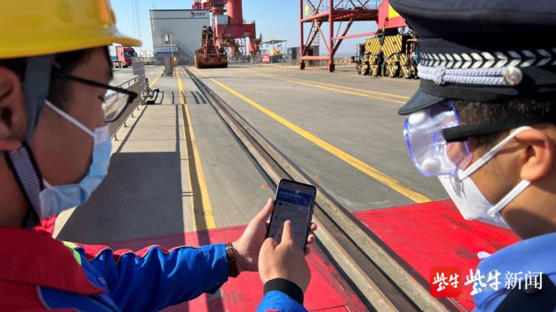圖為碼頭工人現(xiàn)場手機(jī)操作系統(tǒng)