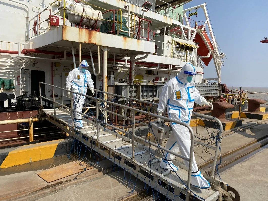 鹽城海岸線長(zhǎng)達(dá)582公里,占江蘇省海岸線總長(zhǎng)度比重高達(dá)56%,鹽城港共有“一港四區(qū)”,即大豐港區(qū)、濱海港區(qū)、射陽(yáng)港區(qū)和響水港區(qū),點(diǎn)多面廣。有一群人默默在這些口岸間來(lái)回穿梭,對(duì)入境船舶實(shí)施登臨檢疫,筑牢口岸檢疫防線,他們就是鹽城海關(guān)疫情防控水運(yùn)專班的成員。