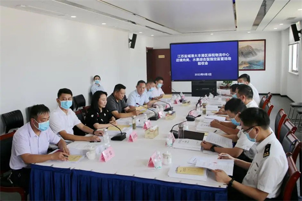 8月2日,鹽城港保稅物流中心進(jìn)境肉類、水果綜合型指定監(jiān)管場地順利通過省級驗(yàn)收。鹽城海關(guān)副關(guān)長李健、大豐區(qū)商務(wù)局副局長施曉鐘、鹽城港集團(tuán)總經(jīng)理助理孫永峰、大豐港集團(tuán)及鹽城港保稅物流中心等相關(guān)負(fù)責(zé)同志參加。