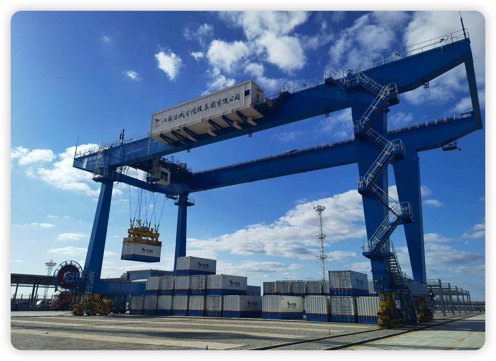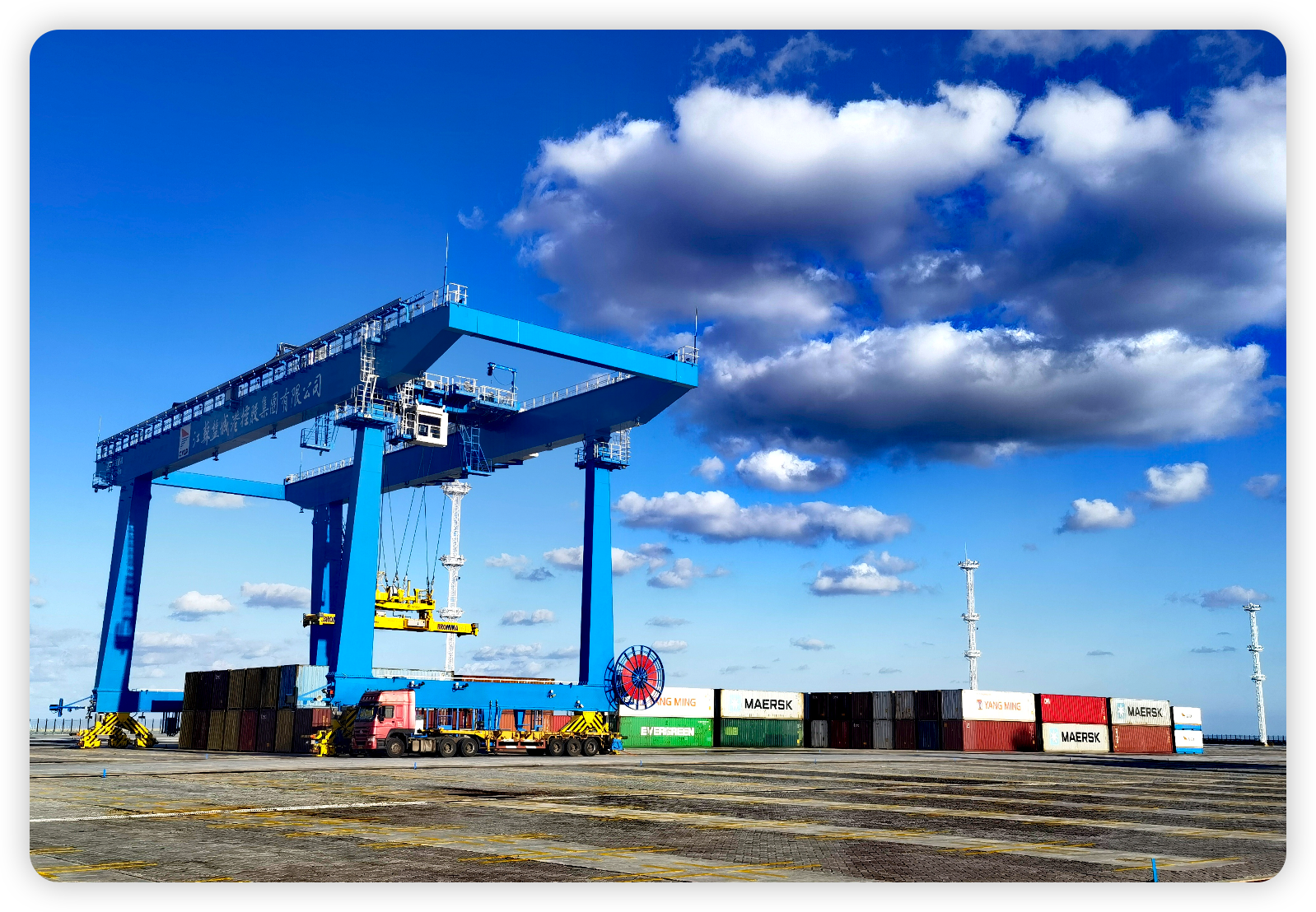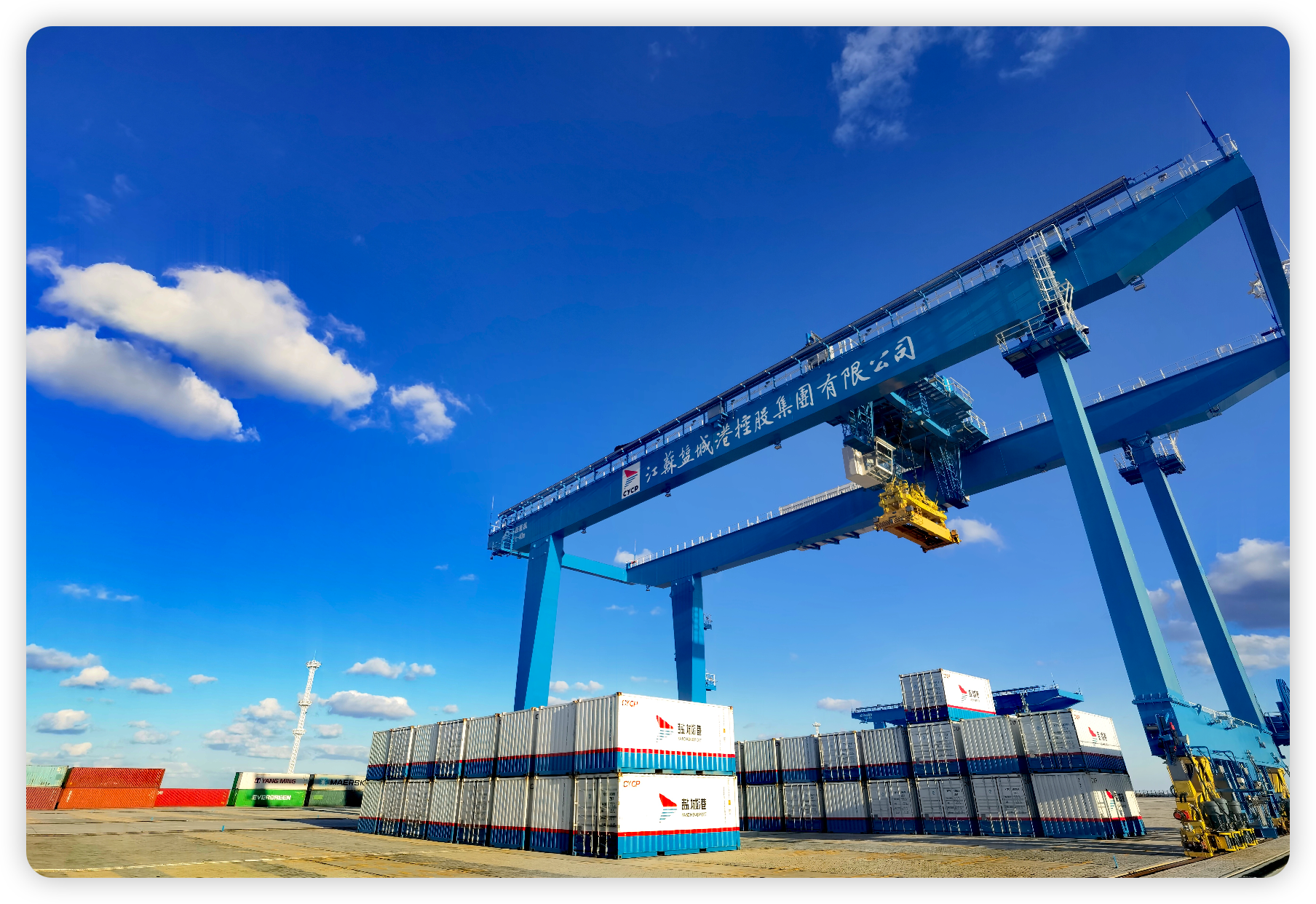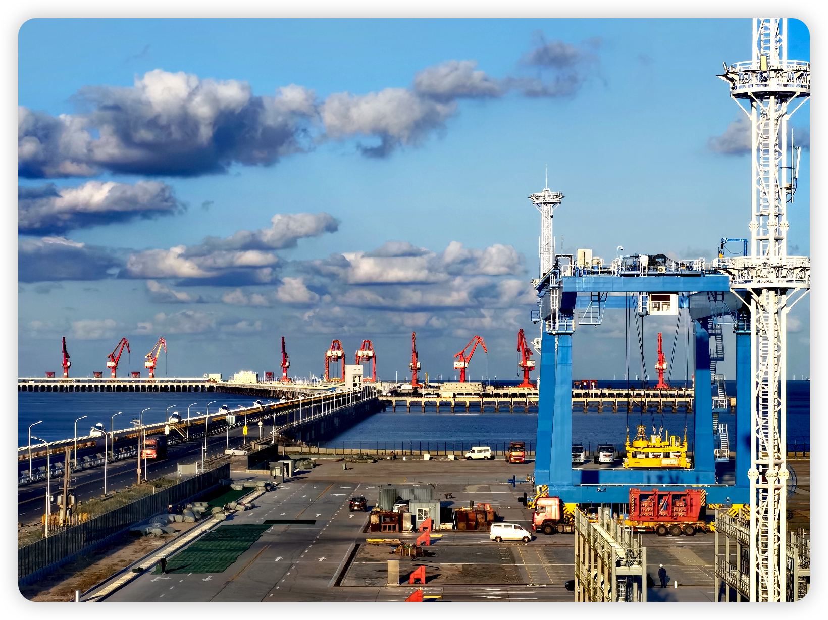 冬日暖陽照在海平面上。鹽城港的各港區(qū),龍門吊升降騰挪,集卡穿梭不息,一片繁忙。