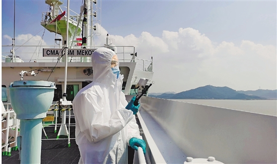 今年突如其來的新冠肺炎疫情,給港口防疫和生產(chǎn)作業(yè)帶來嚴峻挑戰(zhàn)。引航是船舶從境外進入國內(nèi)的第一道大門,必須嚴防死守。為此,寧波舟山港規(guī)定,引領船舶作業(yè)時,引航員除了戴上口罩、手套等防護用品外,還應采取穿防護服、戴護目鏡等防護措施。
