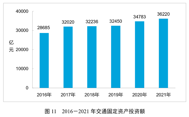 全年完成交通固定資產(chǎn)投資36220億元,比上年增長(zhǎng)4.1%。