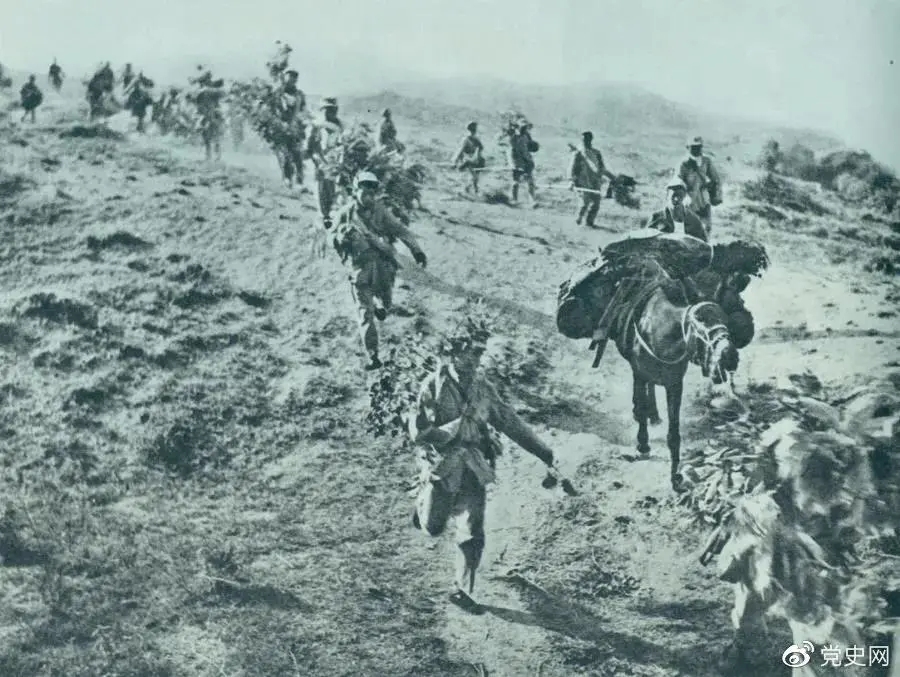 圖為1947年5月在孟良崮戰(zhàn)役中,華東野戰(zhàn)軍向孟良崮挺進(jìn)。