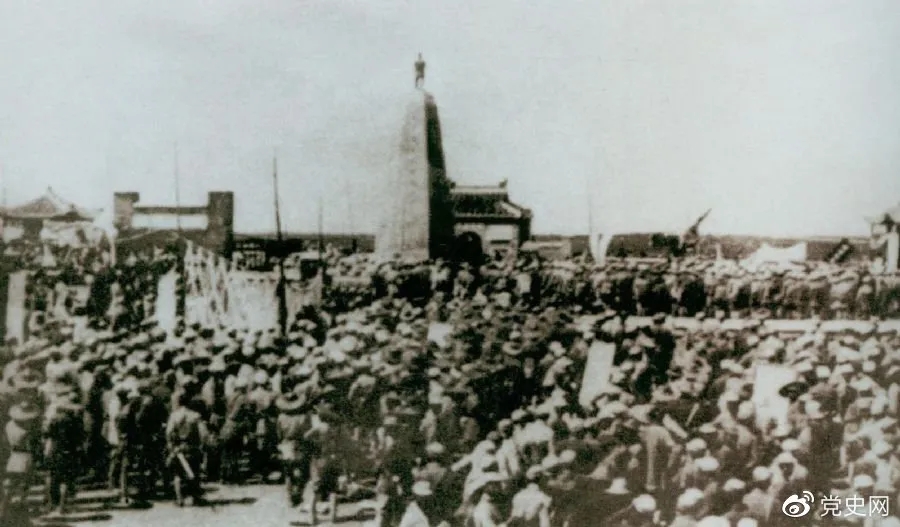 1931年6月,紅七軍到達中央革命根據(jù)地江西興國縣,編入彭德懷率領(lǐng)的紅三軍團。圖為當時會師的情形。