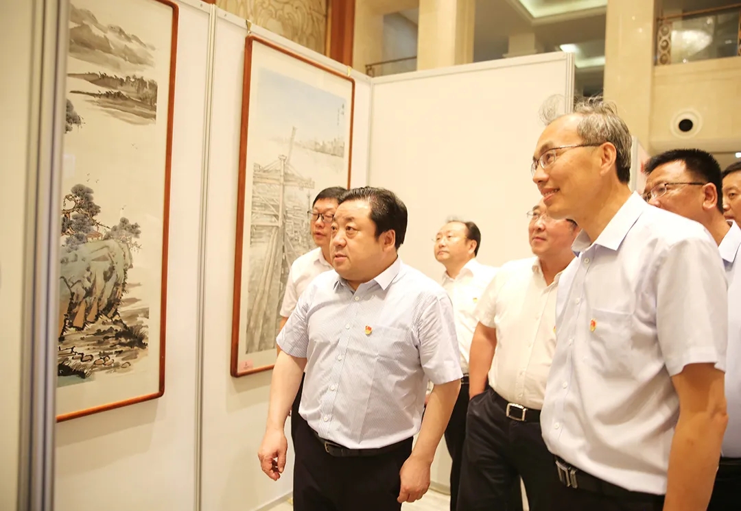 晚會(huì)開始前,周正雄還帶領(lǐng)與會(huì)人員參觀了集團(tuán)職工書畫展。本次書畫展參展作品內(nèi)容豐富,形式多樣,立意新穎,用書畫定格歷史瞬間,串聯(lián)起波瀾壯闊的百年征程,呈現(xiàn)出個(gè)性獨(dú)特的藝術(shù)魅力,蘊(yùn)含著飽滿熾熱的藝術(shù)激情,具有較強(qiáng)的藝術(shù)震撼力,受到了大家的一致好評。
