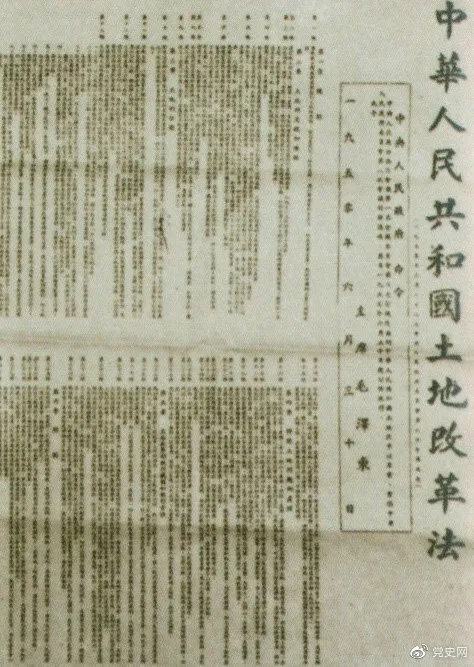 1950年6月30日,中央人民政府公布施行《中華人民共和國土地改革法》。