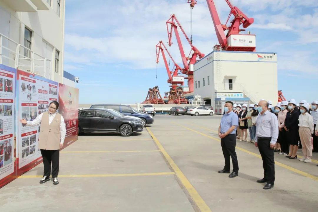 與會人員集中觀摩了大豐港區(qū)集裝箱堆場項目現場并聽取相關匯報,隨后集中前往糧食碼頭分公司,現場觀摩黨建、群團開展工作亮點,查看黨組織標準化臺賬資料、黨群活動中心規(guī)范化建設和黨建工作宣傳氛圍等情況。