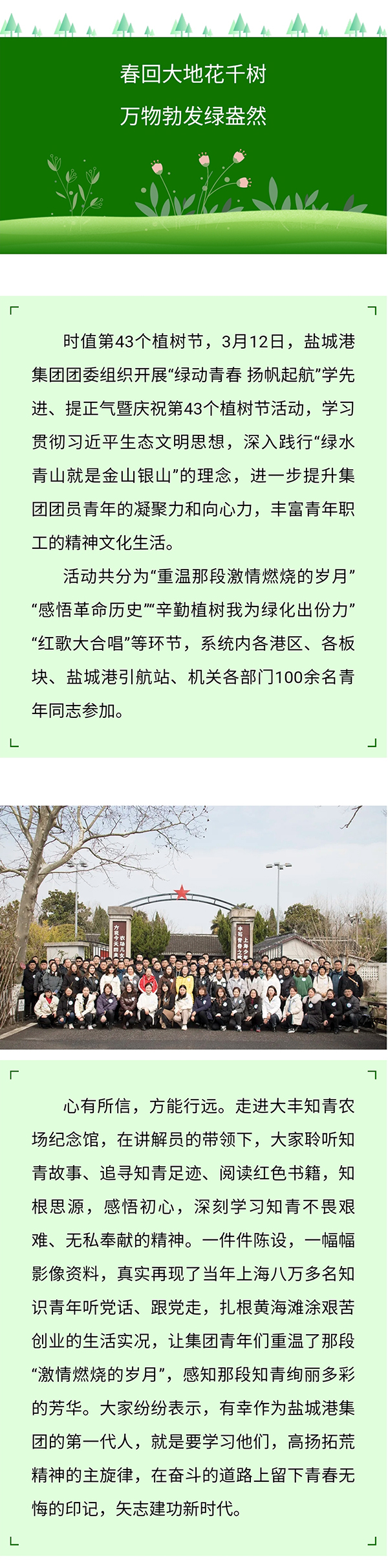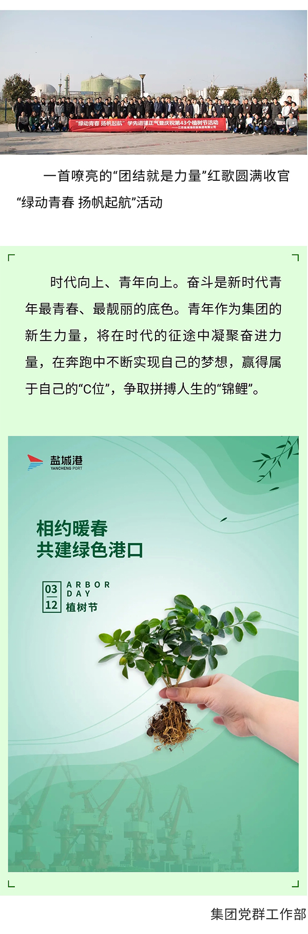 綠動(dòng)青春 揚(yáng)帆起航丨鹽城港集團(tuán)開(kāi)展青年職工學(xué)先進(jìn)提正氣暨慶祝第43個(gè)植樹(shù)節(jié)活動(dòng)