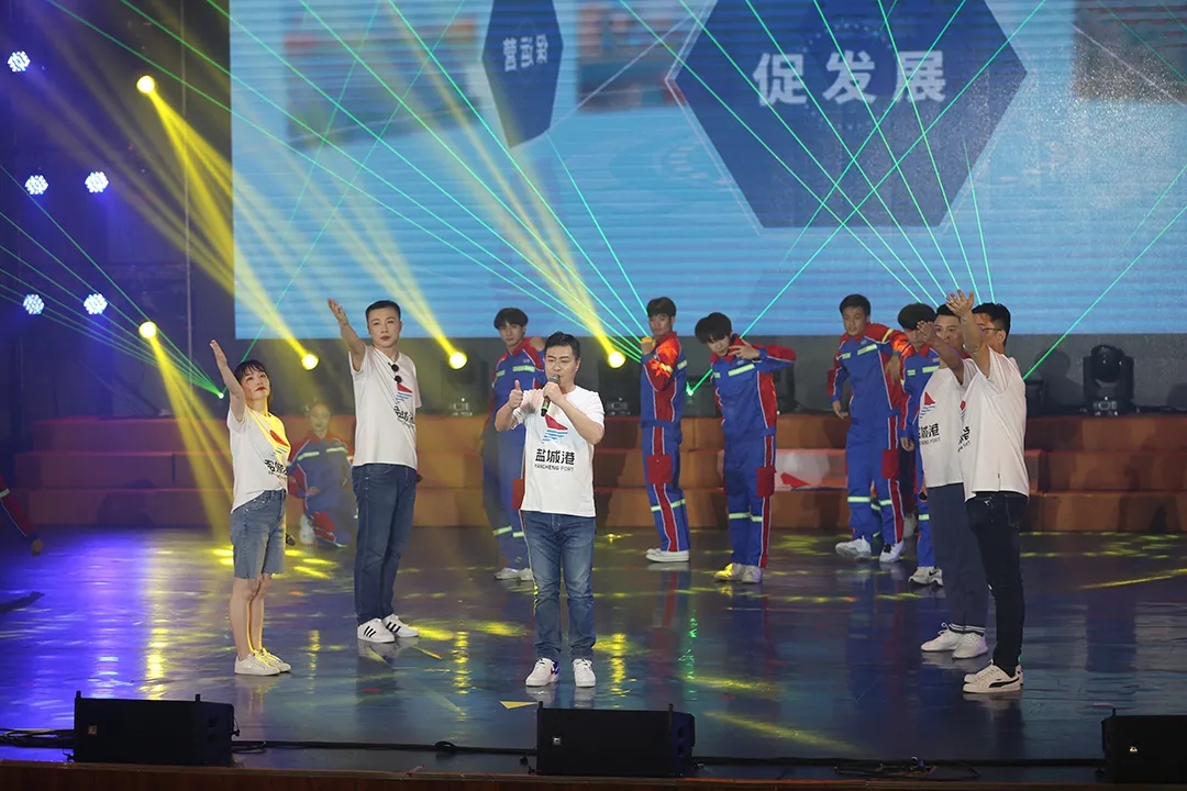 本次演出所有節(jié)目均為集團(tuán)員工自編自演,來自集團(tuán)全系統(tǒng)的200余名演職人員,他們通過歌舞、相聲、快板、情景朗誦等富有感染力的表演形式,“文”聲而動、“藝”出精彩,以鹽城港視角切入偉大時代,充分展示了集團(tuán)員工良好的精神風(fēng)貌。