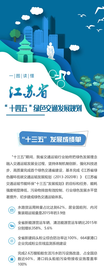 至“十四五”末,全面實現(xiàn)綠色能源消費占比、岸電使用率、鐵路和水路運輸周轉(zhuǎn)量占比、綠色出行比例“4提升”,營運貨車、營運貨船、港口生產(chǎn)碳排放強度和營運船舶氮氧化物排放總量“4下降”——近日,省交通運輸廳正式印發(fā)《江蘇省“十四五”綠色交通發(fā)展規(guī)劃》(以下簡稱《規(guī)劃》),明確提出“十四五”期間全省綠色交通發(fā)展按照“11478”的思路開展,實現(xiàn)“4升4降”,形成與資源環(huán)境承載力相匹配、與生產(chǎn)生活生態(tài)相協(xié)調(diào)的交通運輸發(fā)展新格局,有效支撐我省碳達峰碳中和目標如期實現(xiàn)。