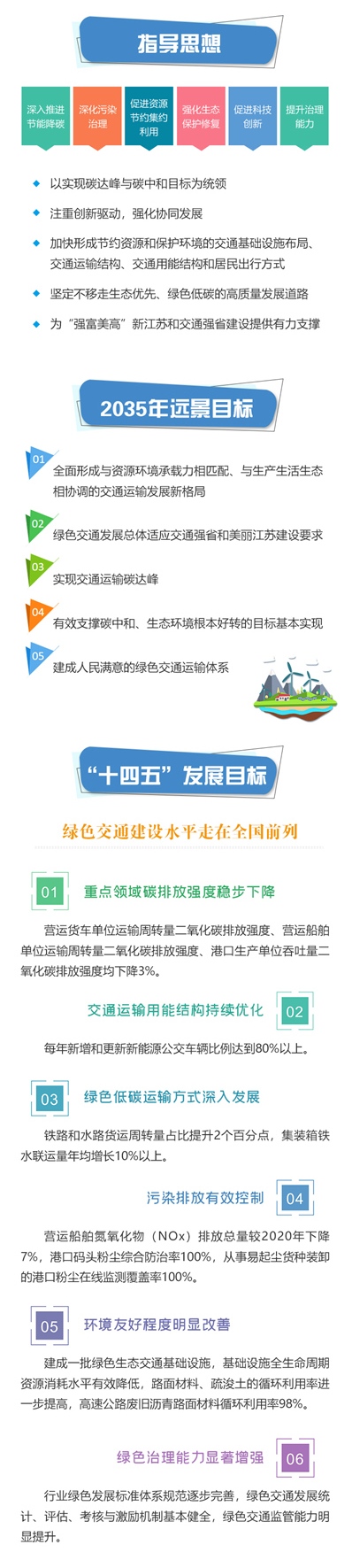 《規(guī)劃》提出“到2025年,綠色交通建設水平走在全國前列”的總體目標,堅持走“生態(tài)優(yōu)先、綠色低碳”高質(zhì)量發(fā)展的新路,明確“低碳化、清潔化、生態(tài)化、長效化”4條發(fā)展主線:推動行業(yè)低碳化發(fā)展方面,重點解決運輸裝備清潔化發(fā)展、公路貨運和社會車輛的碳減排問題,支撐碳達峰目標的實現(xiàn);推動行業(yè)清潔化發(fā)展方面,以港口、船舶、營運車輛和公路建設為重點,開展交通運輸行業(yè)污染深度治理,促進減污降碳協(xié)同效應的發(fā)揮;推動行業(yè)生態(tài)化發(fā)展方面,在健全完善綠色交通基礎設施地方標準體系的基礎上,布局實施一批省級綠色交通基礎設施建設工程,全面提升交通基礎設施的環(huán)境友好程度;推動行業(yè)長效化發(fā)展方面,全面建立以綠色發(fā)展為導向的制度標準體系、科技創(chuàng)新體系和監(jiān)督管理體系,提升綠色交通治理能力和水平。