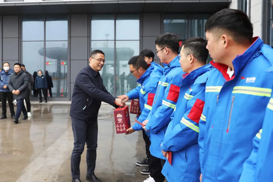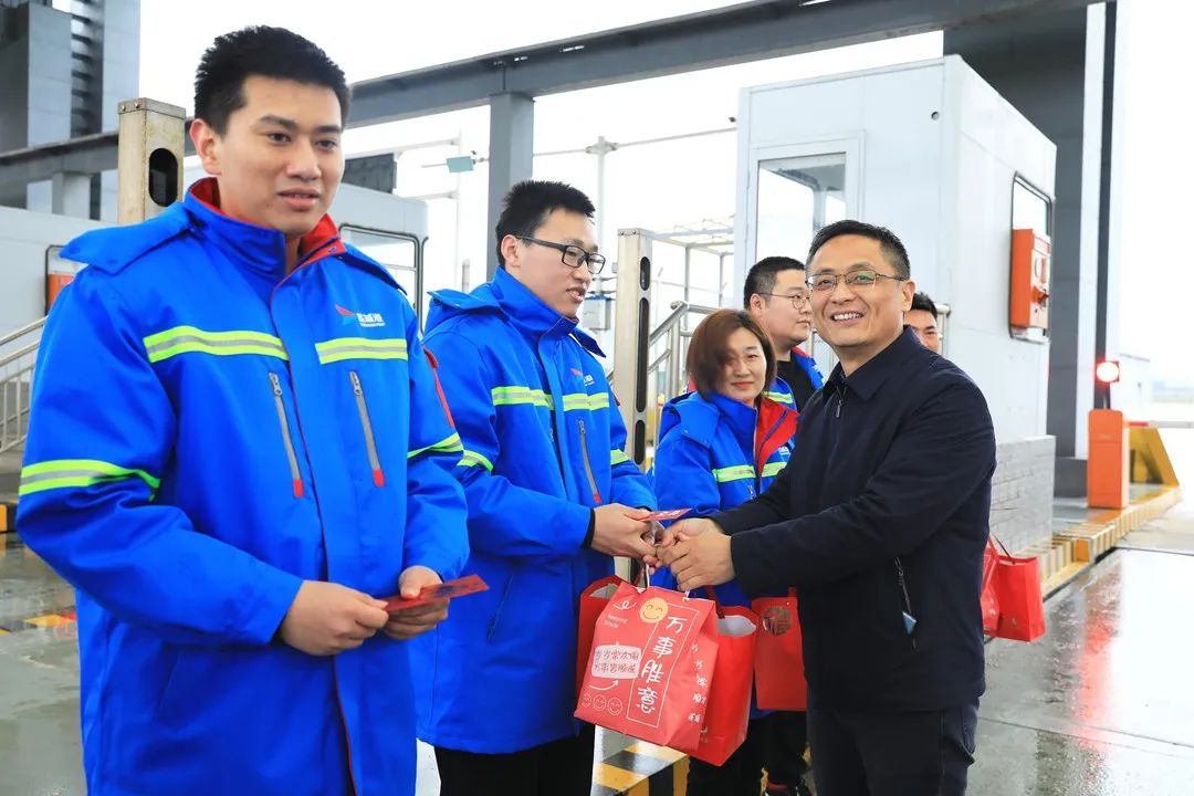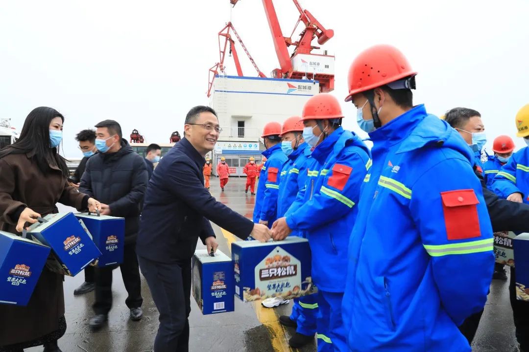 1月22日,大年初一,碼頭一線到處洋溢著節(jié)日喜慶氣氛。受集團黨委、董事會委托,當天上午,集團黨委副書記、董事、總經理陸帥率隊前往大豐港區(qū)看望慰問堅守在一線工作崗位的工作人員,代表集團黨委、董事會向他們致以新春的祝福和節(jié)日的問候。鹽城海關二級高級主辦李健,集團副總經理袁欣等參加。