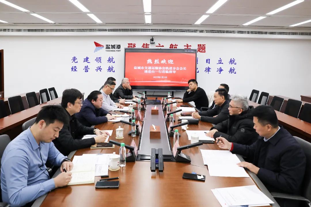 1月3日,集團黨委書記、董事長周正雄會見鹽城市交通運輸協(xié)會軌道分會會長潘進山一行,雙方就推動海鐵聯(lián)運一體化發(fā)展等工作進行交流。