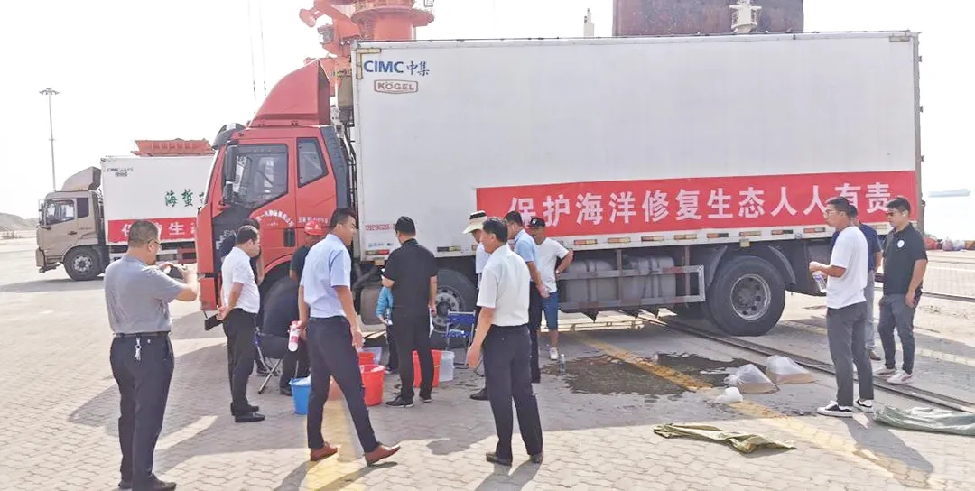 在第17個中國航海日到來之際,7月9日,鹽城港濱海港區(qū)在通用碼頭近海海域開展濱海港區(qū)通用碼頭二期工程、1#、2#、3#、4#物流園基礎設施工程海洋生態(tài)補償增殖放流活動,放流半滑舌鰨魚數(shù)量約76萬尾、半滑舌鰨標志魚數(shù)量約2.7萬尾、三疣梭子蟹數(shù)量約1700萬尾。濱海港區(qū)相關(guān)負責人參加活動。