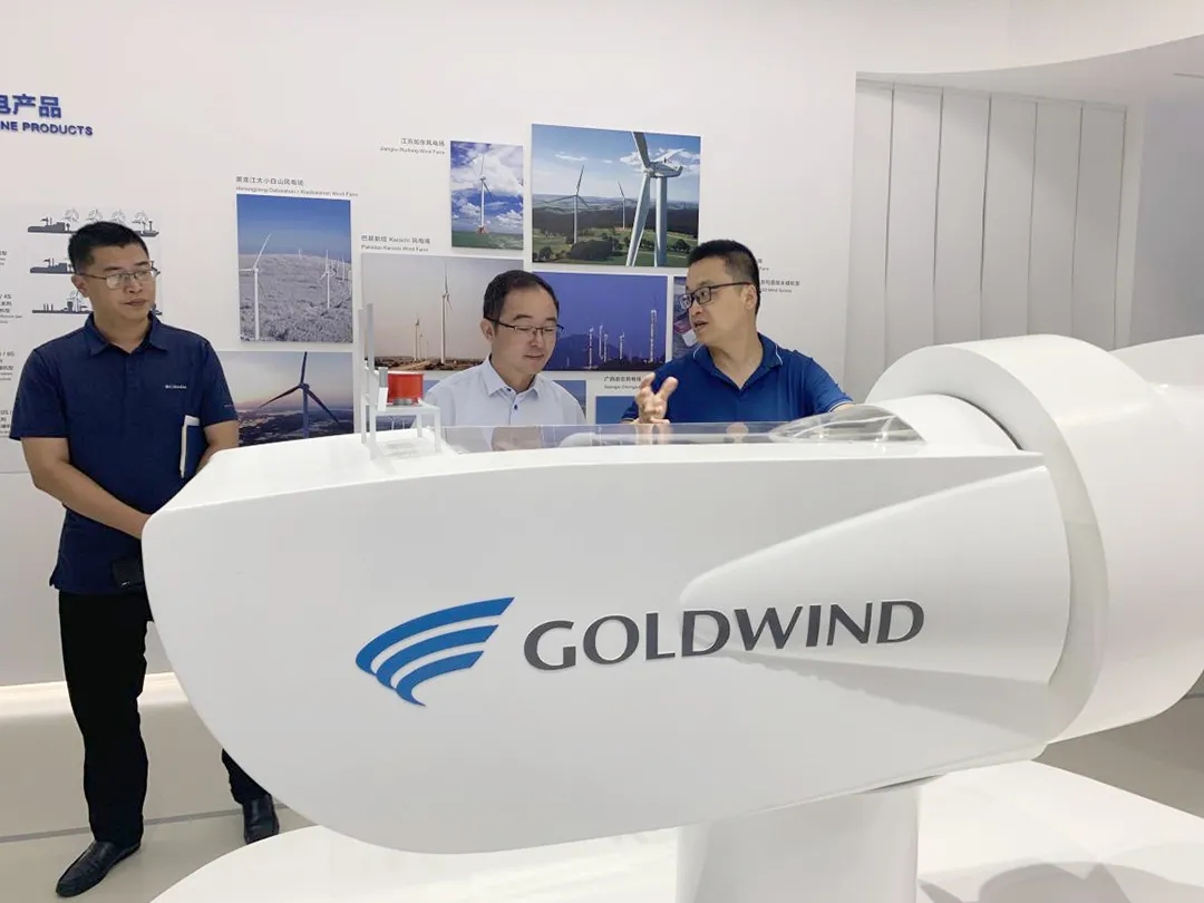 金風(fēng)科技制造中心總經(jīng)理潘晉對(duì)范云飛一行的到訪表示歡迎,并陪同參觀了“碳中和”智慧園區(qū)、全球監(jiān)控中心、能源互聯(lián)網(wǎng)及交直流微網(wǎng)研發(fā)測(cè)試中心和電控制造廠等項(xiàng)目載體。金風(fēng)科技制造中心總經(jīng)理助理李恒介紹了金風(fēng)科技相關(guān)發(fā)展情況。