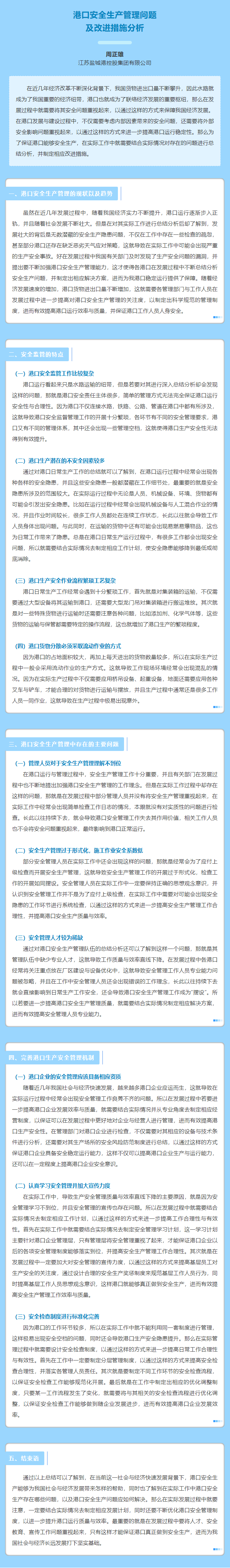 港口安全生產(chǎn)管理問題及改進(jìn)措施分析