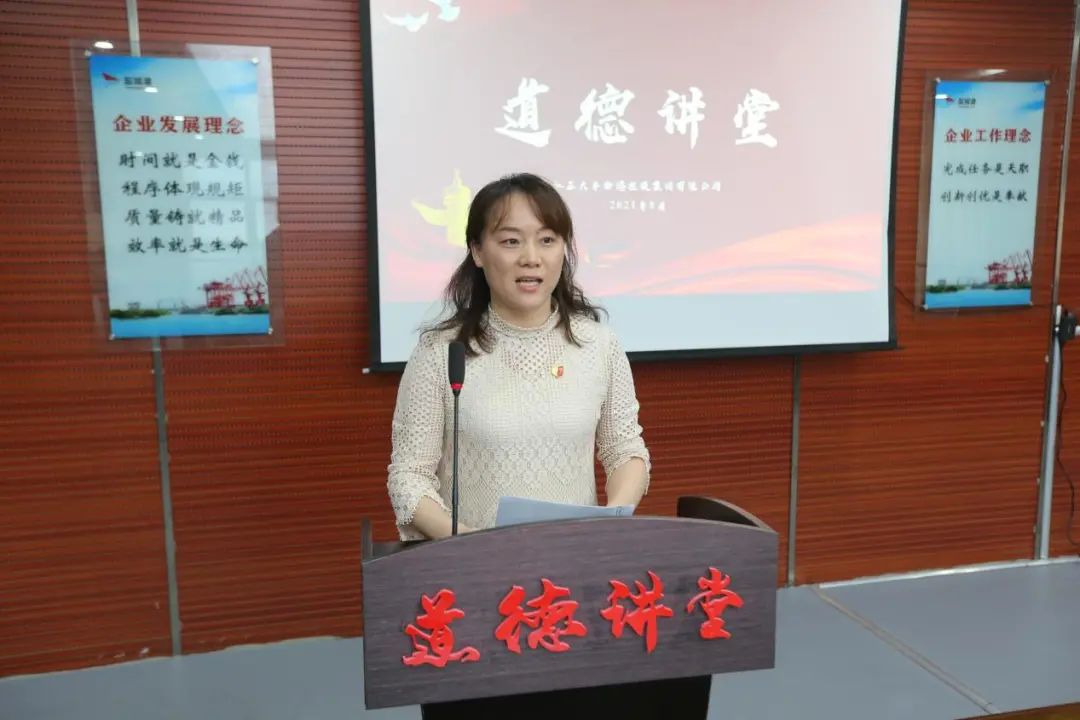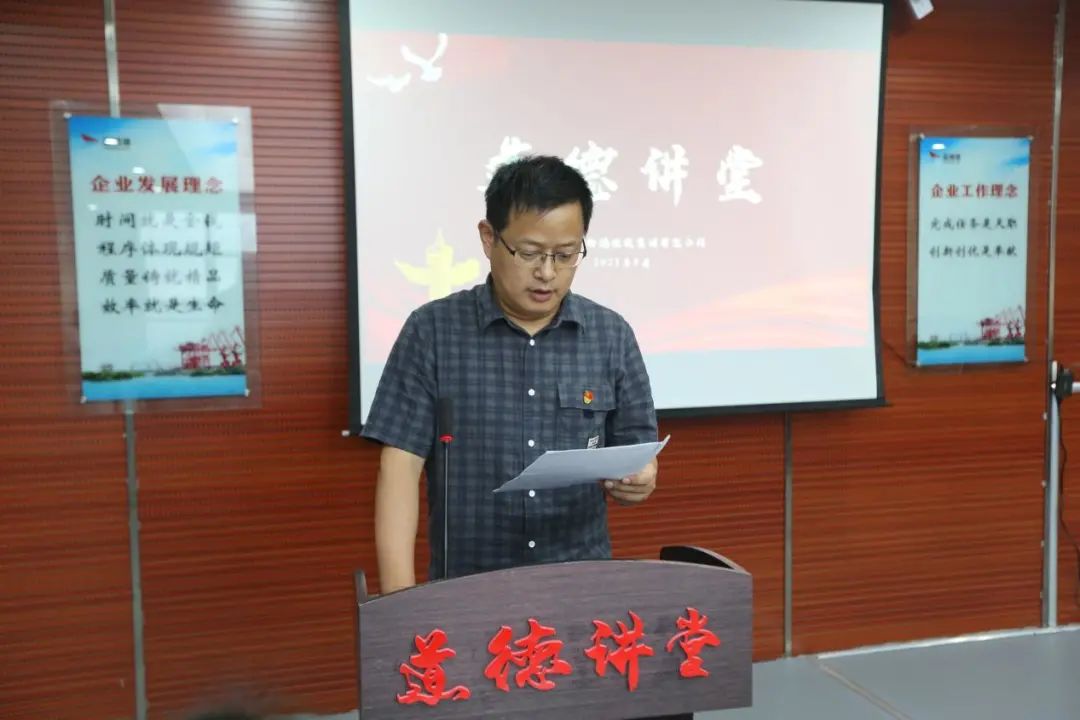 8月27日,大豐港區(qū)開展道德講堂活動,大豐港集團(tuán)黨委委員、董事陸峰主持,集團(tuán)工會、黨群工作部相關(guān)人員,各公司工會副主席、優(yōu)秀職工代表,各公司子女參加高考的職工代表參加。