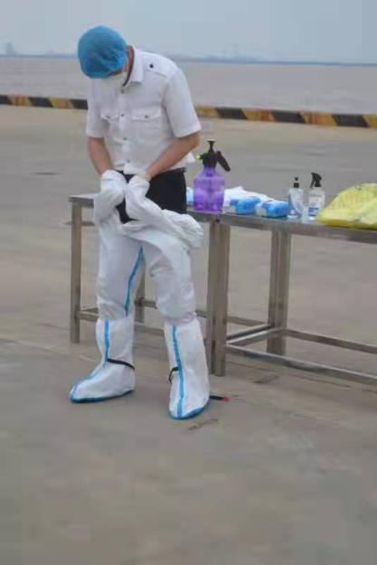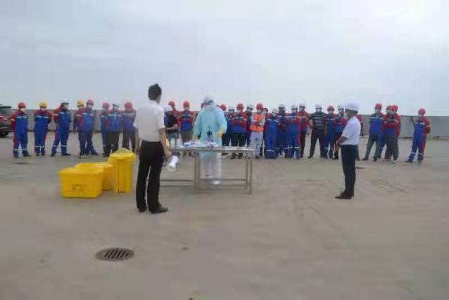 活動(dòng)中,黨總支書(shū)記韋林和作培訓(xùn)動(dòng)員,鹽城海關(guān)駐大豐港辦事處領(lǐng)導(dǎo)對(duì)港口作業(yè)人員宣講了常態(tài)化防疫管理對(duì)港口作業(yè)的重要性,專(zhuān)班工作人員就規(guī)范穿脫防護(hù)服、醫(yī)療廢棄物垃圾袋消毒和鵝勁式包扎流程進(jìn)行了示范操作。