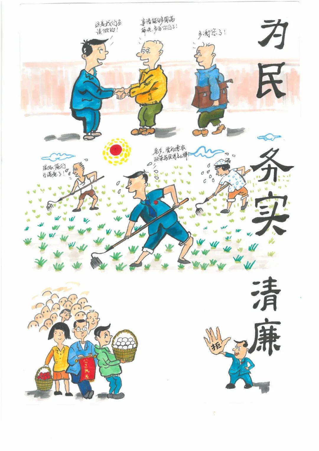 本次書畫比賽收到了來(lái)自大豐港區(qū)干部職工、家屬以及子女的書法、繪畫作品共計(jì)百余幅。參加作品形式廣泛、題材多樣,或用山水書法表達(dá)對(duì)祖國(guó)大好山河的熱愛,或用古今廉政格言警句傳遞廉政理念,或用漫畫弘揚(yáng)清廉家風(fēng),針砭時(shí)弊,激濁揚(yáng)清,寓意深刻,營(yíng)造了“愛國(guó)、愛家、崇廉、尚廉、守廉、倡廉”的良好氛圍。