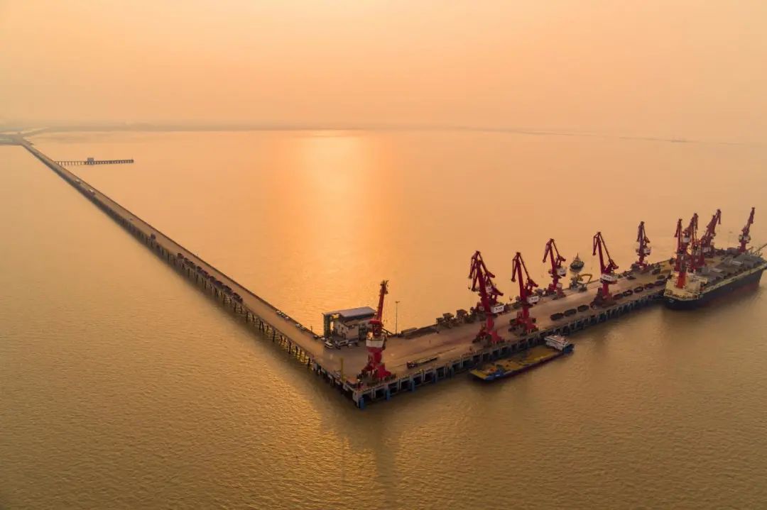 陣陣秋風(fēng)吹散晨霧,金色的陽光灑進大豐港區(qū),給整個港區(qū)披上一層蟬翼般的金紗。