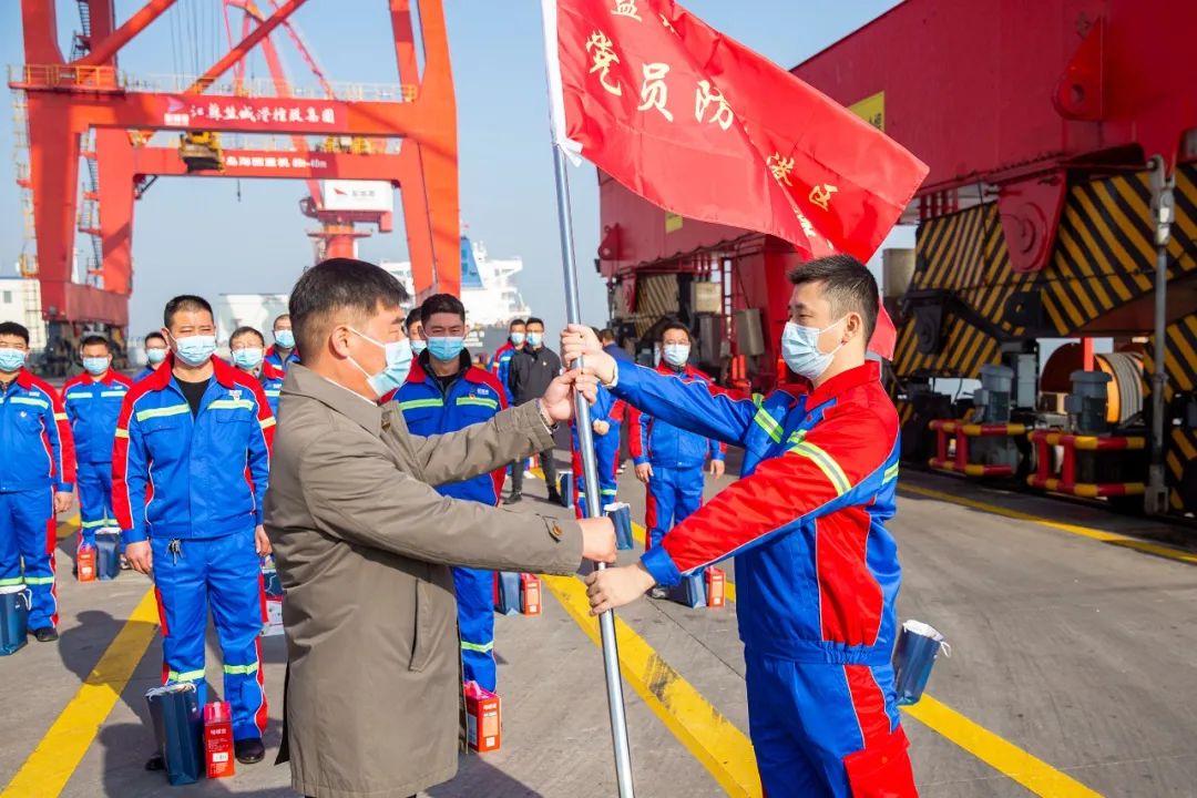 疾風知勁草,烈火見真金。疫情發(fā)生以來,大豐港區(qū)迅速行動,先后成立“許鵬志愿隊”、“黨員志愿者”等隊伍,團結(jié)帶領廣大黨員多次開展支援一線疫情防控工作和走訪慰問幫扶活動,使黨員干部成為團結(jié)和帶領群眾戰(zhàn)勝疫情和各種困難的“先鋒隊”和“主心骨”。集裝箱碼頭平臺上,防疫先鋒隊隊長鄭重地接下“鹽城港大豐港區(qū)黨員防疫先鋒隊”鮮紅的旗幟,64名隊員依次簽署承諾書,并接受防控疫情崗前培訓,熟悉碼頭疫情防控相關知識,掌握疫情處理各項工作步驟。這支隊伍中,來自農(nóng)業(yè)科技公司的兩名女隊員獨具“靚”點,她們舍小家為大家,積極投身到抗疫隊伍中,為碼頭防控一線注入了光彩奪目的“巾幗力量”。