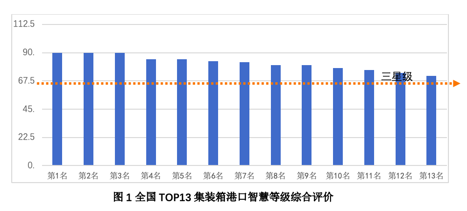 需要說(shuō)明的是,目前暫時(shí)以全國(guó)(不含港澳臺(tái))TOP13集裝箱港口為對(duì)象,首次探索開(kāi)展了國(guó)內(nèi)智慧港口等級(jí)評(píng)價(jià)。下一步將進(jìn)一步完善智慧港口等級(jí)評(píng)價(jià)指標(biāo)體系和方法,加強(qiáng)國(guó)際對(duì)標(biāo),擴(kuò)大延伸評(píng)價(jià)范圍,為我國(guó)智慧港口建設(shè)發(fā)展提供有益的參考依據(jù)。