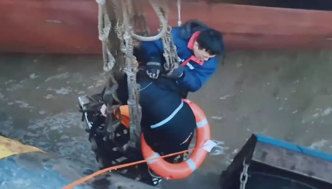 套好救生圈,拉緊救生繩,再配合船上吊機(jī),一拖一拽之間成功將落水船員救上岸,整個(gè)救援過(guò)程僅僅用了5分鐘。據(jù)了解,落水船員目前生命體征正常,精神狀態(tài)良好。