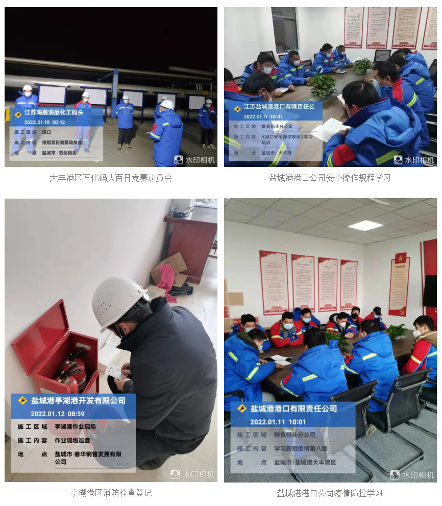 1.安全生產(chǎn)、疫情防控工作常態(tài)化持續(xù)開展。鹽城港港口公司:安全、疫情防控日常巡查,班前會,防疫消毒;濱海港區(qū):組織疫情防控演練,安全、疫情防控日常巡查,碼頭設備作業(yè)前安全檢查;大豐港區(qū):安全日常檢查,防疫消殺;集裝箱集團:安全、疫情防控日常巡查,碼頭設備作業(yè)前安全檢查,抓好了日常消殺工作;投資集團:安全、疫情防控日常巡查,組織作業(yè)人員核酸檢測;陸港集團:作業(yè)現(xiàn)場、消防巡查,日常消殺;射陽港區(qū):安全、疫情防控日常巡查,疫情防控演練,設備安全檢查,夜間安全巡查,安全交底;響水港區(qū):安全、疫情防控日常巡查,開展一線人員核酸檢測,對作業(yè)區(qū)、辦公區(qū)防疫消殺;鹽城港保稅物流公司:開展安全、疫情防控日常巡查,組織作業(yè)區(qū)安全巡查,日常消殺工作;鹽城港項目公司:組織日常安全巡查,開晨會布置安全工作。