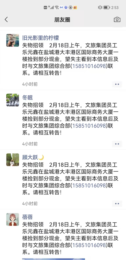 “看到微信朋友圈滿屏的失物招領(lǐng)信息,我才發(fā)現(xiàn)原來是我自己的錢丟了,真是太感謝了?!边@是近日,一位在大豐港區(qū)成功通過微信朋友圈找回丟失現(xiàn)金的失主發(fā)出的感慨。