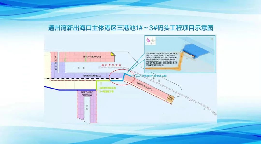 去年底,通州灣新出??谥黧w港區(qū)三港池1#—3#碼頭開(kāi)工,項(xiàng)目可滿足沿江、沿海產(chǎn)業(yè)對(duì)大型碼頭中轉(zhuǎn)的迫切需求。南通港集團(tuán)建設(shè)投資有限公司副總經(jīng)理尹進(jìn)軍表示,到2025年,以服務(wù)長(zhǎng)江經(jīng)濟(jì)帶集裝箱等貨物中轉(zhuǎn)運(yùn)輸和臨港工業(yè)并重的新出海口初步建成,港口設(shè)施能力進(jìn)一步提升、服務(wù)功能進(jìn)一步健全、集疏運(yùn)體系進(jìn)一步完善。