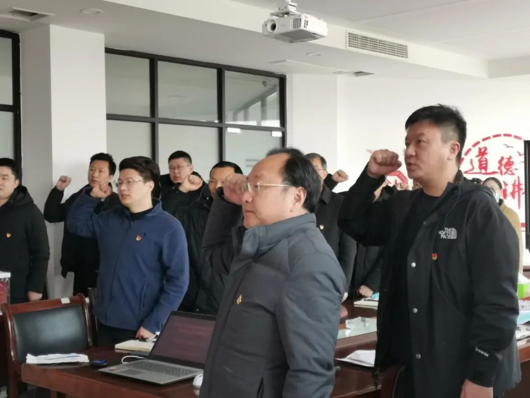 “我志愿加入中國共產(chǎn)黨,擁護(hù)黨的綱領(lǐng),遵守黨的章程……”,響水港區(qū)黨總支書記帶領(lǐng)全體黨員面對黨旗,重溫入黨誓詞,進(jìn)一步堅(jiān)定理想信念。鏗鏘有力的宣誓聲響徹室內(nèi),現(xiàn)場所有人都深受感染,仿佛回到了那個(gè)風(fēng)雨如磐的年代。