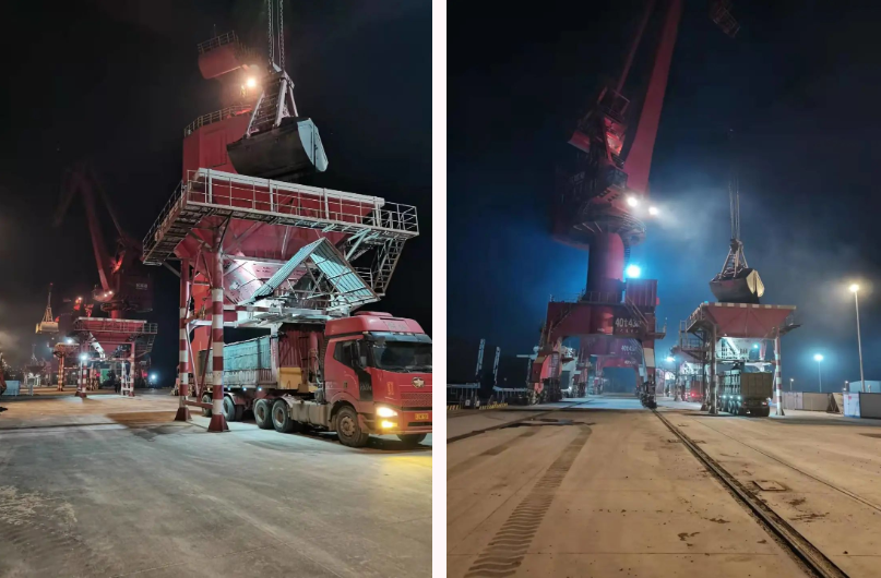 面對壓力,響水港區(qū)生產(chǎn)經(jīng)營團(tuán)隊(duì)始終站在服務(wù)客戶角度,急客戶所急,統(tǒng)籌考慮利用所有碼頭資源,綜合考慮客戶需求、船舶類型等方面,碼頭設(shè)施設(shè)定生產(chǎn)目標(biāo),靶向發(fā)力,利用甲板船自卸特點(diǎn),結(jié)合目前重件碼頭尚沒有起吊設(shè)施只有碼頭岸線現(xiàn)況,經(jīng)與海事等部門溝通協(xié)商,最終安排“源鑫168”甲板船靠泊重件碼頭泊位進(jìn)行自卸,將“通洋旭瑞”和“盛山”兩艘次大輪靠泊4#、5#泊位作業(yè),確保三條大輪同時(shí)順利完成接卸任務(wù)。