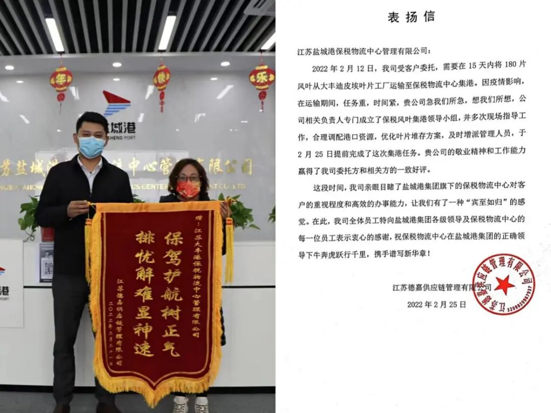 鹽城港保稅物流中心圍繞集團(tuán)黨委“經(jīng)營興航年”“改革攻堅年”部署要求,秉承“客戶至上,服務(wù)為本”的經(jīng)營理念,不斷提升服務(wù)水平,提高專業(yè)素養(yǎng)。同時,保稅物流中心為切實做好疫情防控工作,針對進(jìn)出貨物采取劃界作業(yè),裝卸專班人員區(qū)域內(nèi)作業(yè)等要求,真正做到了生產(chǎn)經(jīng)營、疫情防控兩手抓、兩手硬、兩不誤。細(xì)致周到、高效便捷的服務(wù)也贏得了社會各界的廣泛贊譽,部分客戶還特意送來了錦旗和感謝信以表達(dá)他們的感激之情。