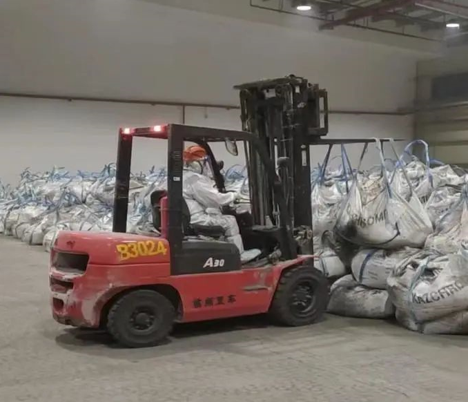 (叉車駕駛員在保稅區(qū)進(jìn)行噸袋裝卸)