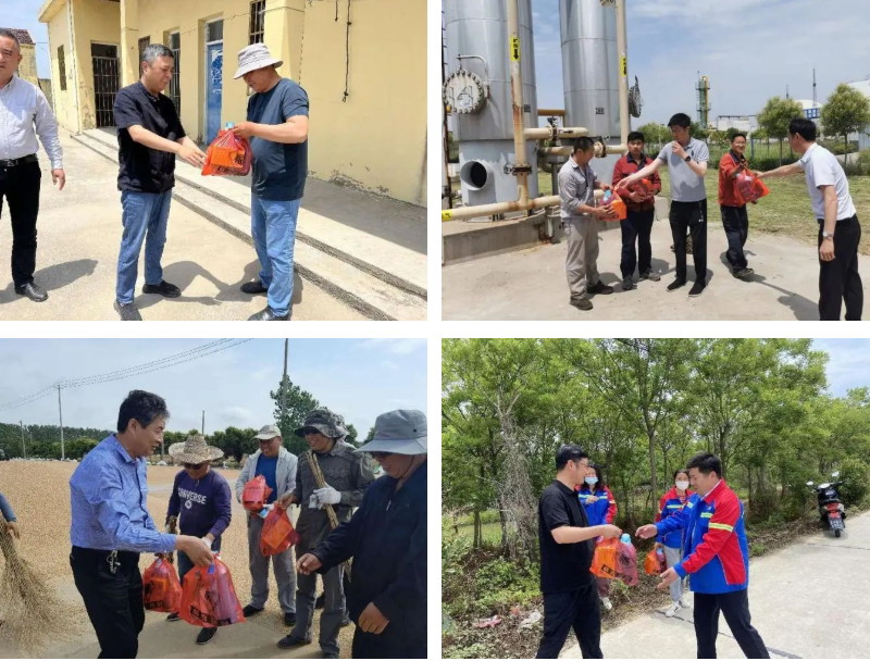 農(nóng)業(yè)科技集團積極貫徹落實鹽城港集團黨委的部署要求,以“黨建領(lǐng)航”為指引,把握正確方向,大力弘揚社會主義核心價值觀,堅持以“職工為本”,加強高溫季節(jié)一線人員生活保障工作。日前,農(nóng)業(yè)科技集團開展“夏送清涼·黨旗紅”慰問活動,公司領(lǐng)導(dǎo)班子分別率隊看望慰問奮斗在高溫一線的職工,為他們送去夏季勞保用品,并向他們致以誠摯的關(guān)心與問候,為廣大一線干職工帶來了絲絲“清涼”。