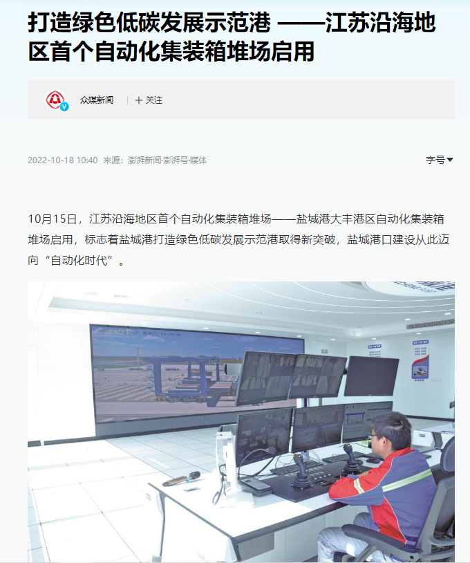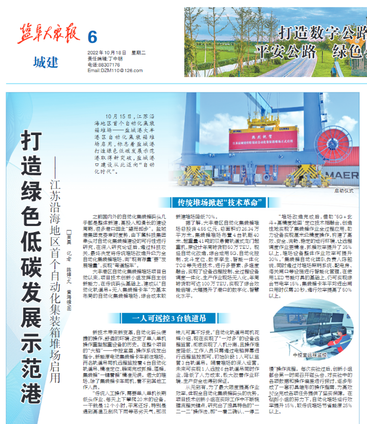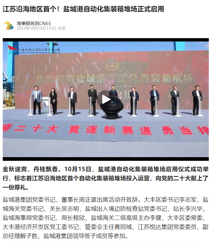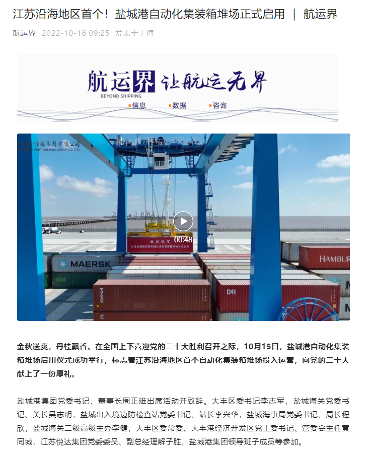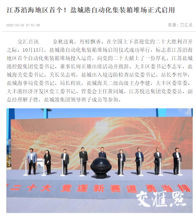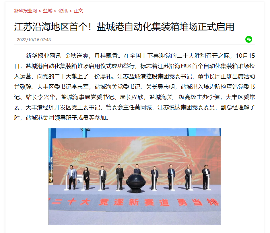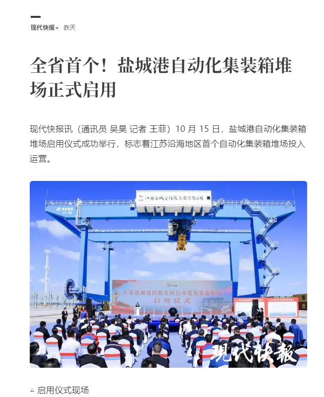 江蘇沿海地區(qū)首個自動化集裝箱堆場——鹽城港大豐港區(qū)自動化集裝箱堆場正式啟用